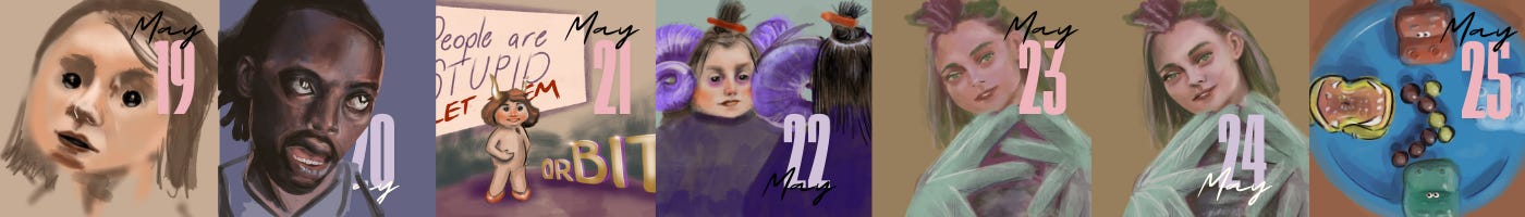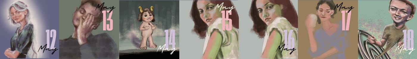 May 16: My Personal Energy Vampire about my child who wears down my emotional core (I love her to pieces, but we rub each other against our rigid neurodivergent needs).